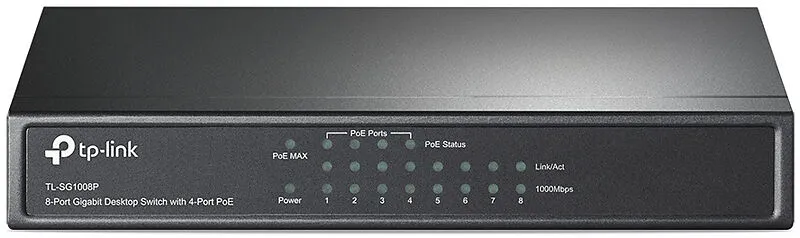 8-Port-Gigabit-Desktop-Switch mit 4 PoE-Ports Der 8-Port-Gigabit-Desktop-PoE-Switch TL-SG1008P ermöglicht eine nahtlose Netzwerkverbindung. Er kombiniert Fast-Ethernet- mit Gigabit-Ethernet-Netzwerkfähigkeiten. 4 der 8 Autoabstimmungs-RJ45-Ports (Port 1 bis 4...