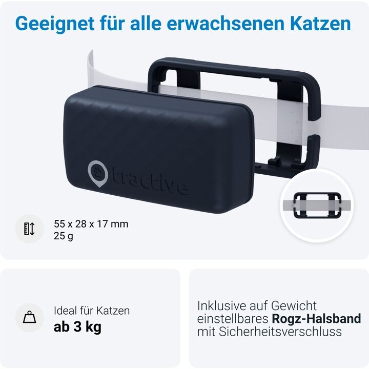 GPS Tracker für Katzen Gratis-App für Android, iOS und Web Passt sich individuell an die Grösse/Dicke Ihres Halsbands an Wiederaufladbarer Peilsender Katzen: Akkulaufzeit bis zu 7 Tage, 2 Stunden Ladezeit Der GPS Tracker für Katzen wiegt 25 g und wird für Haus...