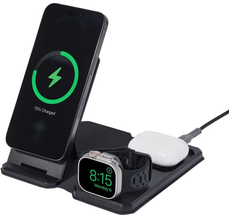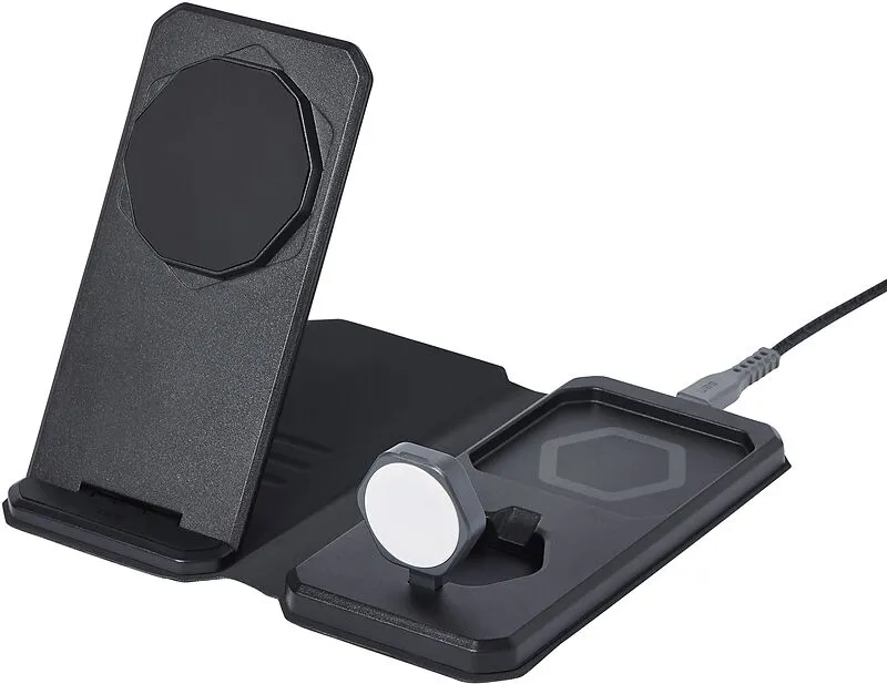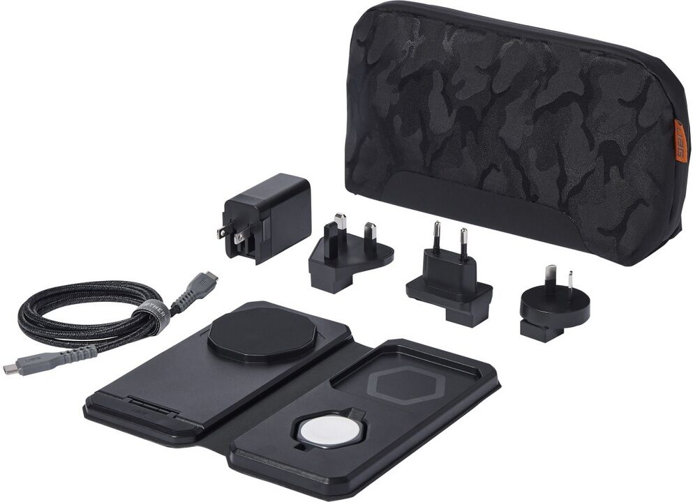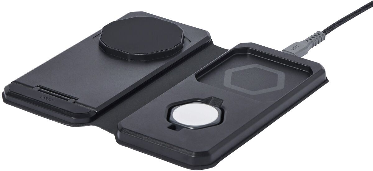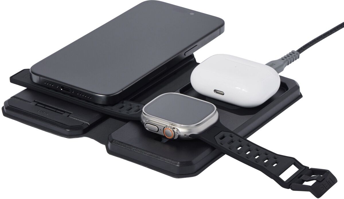 Das UAG SRGE 3-in-1-Tischladegerät ist eine vielseitige Lösung, um Ihr Ladeerlebnis zu optimieren. Das Ladepad wurde für das Laden mehrerer Geräte entwickelt und verfügt über spezielle Ladeplätze für Ihr iPhone, Ihre AirPods und Apple Watch. Es verfügt über ei...