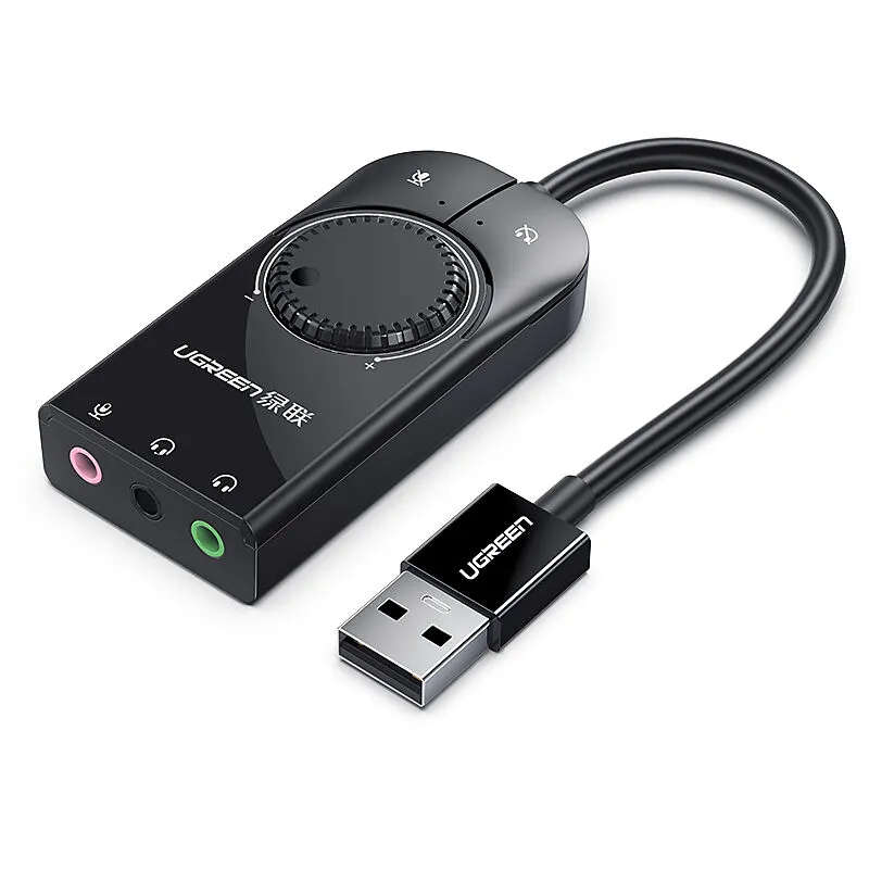 UGREEN - EXTERNAL USB - Sound Adapter Externe Soundkarte mit Kopfhörer, Headset und Mikrofonanschluss, praktisch für Home Office und Videokonferenzen oder Skype Anrufe, mit Mute Taste für Privatsphäre. Lautstärkeregler und Stummschaltungstasten Headset-Anschl...