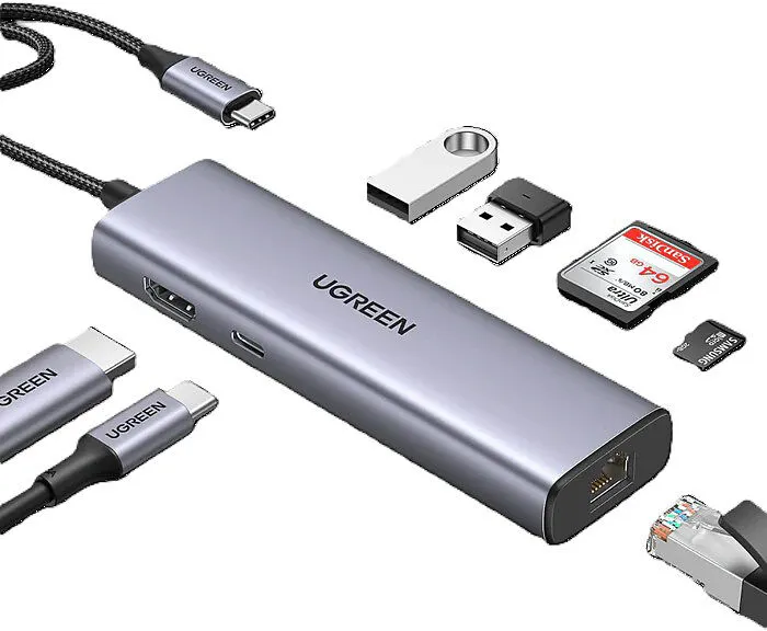 7-in-1 Hub Der USB-C-Hub erweitert Ihre Laptops oder Tablets um 7 Anschlüsse wie HDMI, Ethernet, 2 USB 3.0-Anschlüsse, PD-Ladefunktion sowie SD- und Micro-SD-Kartensteckplätze und steigert so Ihre Produktivität. Schlankes und kompaktes Design: Der USB-C-Hub i...