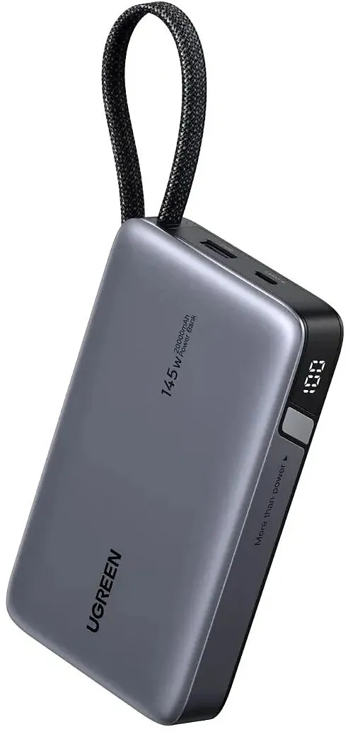 BIULT-IN-CABLE - Powerbank Reisefreundlich & Lädt 3 Geräte gleichzeitig: Tragegurt mit integriertem USB-C-Kabel, unterstützt Laptops, Tablets, iPhones, 3 Geräte gleichzeitig laden. Schnellladeprotokoll: Bis zu 100 W Schnellladen für iOS & Android, unt...