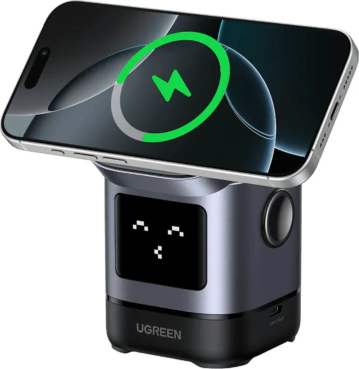 UNO - Wireless Charger 2in1 Die perfekte lustige Desktop-Assistent: UGREEN UNO Ladestation iPhone ist mit einem Roboter-Look, die LED-Anzeige auf dem Körper kann visuell zeigen die beiden Zustände der Ladestation, so dass du leicht weisst, den Ladestatus dein...