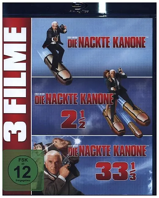 -> Die Nackte Kanone (USA, 1988, 81 Min., FSK 12): Lt. Drebin verdächtigt den zwielichtigen Geschäftsmann Vincent Ludwig eines Mordanschlag auf seinen Kollegen. Bei seinen Recherchen in Ludwigs Büro kann Drebin allerdings außer der auffallend hübschen Sekretärin Jane nichts entdecken. Ludwig nutzt die spontane Zuneigung der beiden, um Informationen über den Stand der Ermittlungen der Polizei zu erhalten. Er hat den Auftrag angenommen, die britische Queen bei ihrem bevorstehenden Besuch in Los Angeles zu ermorden. Nachdem die Warnungen des tollpatschigen Polizisten nicht ernst genommen werden, muss Drebin allein zur Tat schreiten. Die Queen erlebt dabei zwar ein paar unangenehme Überraschungen, aber der Anschlag kann verhindert werden. -> Die Nackte Kanone 2 (USA, 1991, 82 Min., FSK 12): Der Führer der Atomlobby, Hapsburg, entführt den Berater in Umweltfragen des amerikanischen Präsidenten, Dr. Meinheimer, und will ihn mit einem Doppelgänger ersetzen, der in einer großen Rede für Atomkraftwerke plädieren soll. Lt. Drebin, soeben ausgezeichnet für die Erschießung des 1000. Drogendealers, wird mit dem Fall beauftragt und stößt unvermittelt auf Jane, seine große Liebe, die ihn zwei Jahre zuvor verließ und nun bei Hapsburg arbeitet. Drebin kommt dem Verbrecher zufällig näher. Panisch entführt Hapsburg auch Jane. Nun ist es an der Zeit für Drebin einzuschreiten. In einem wilden Showdown siegt das Gute. -> Die Nackte Kanone 33 1/3 (USA, 1994, 79 Min., FSK 12): Lt. Frank Drebin kann sich nicht mit seiner Pensionierung abfinden. Zum Leidwesen seiner Frau Jane kehrt er in den Polizeidienst zurück und wird als Undercover-Agent auf einen Terroristen, der von der Gefängniszelle aus Bombenattentate steuert, angesetzt. Und während die holde Gattin selbst ungewöhnliche Abenteuer erlebt, läßt sich Frank in den Knast einschleusen, um sich das Vertrauen des Bösewichts zu erschleichen.