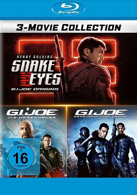 -> G.I. Joe - Geheimauftrag Cobra (USA 2009, 118 Min., FSK 16): Von der ägyptischen Wüste bis unter die polaren Eiskappen muss das Eliteteam um G.I. JOE bei dieser Mission reisen. Dabei werden die brandneuesten Spionage- und Militärgeräte eingesetzt, um den korrupten Waffenhändler Destro zu bekämpfen und der immer größer werdenden Bedrohung durch die geheime Cobra-Organisation Einhalt zu gebieten - bevor die Welt im Chaos versinkt. -> G.I. Joe - Die Abrechnung (USA/Kanada 2013, 123 Min., FSK 16): Das G.I. JOE Team ist zurück und setzt zu seiner zweiten, actiongeladenen Mission an! Unter neuer Führung durch den legendären Roadblock (Dwayne The Rock Johnson) sind die Elite-Spezialisten um Captain Duke (Channing Tatum) nicht nur der feindlichen Organisation Cobra weiter auf der Spur, sie müssen sich plötzlich mit einer ganz neuen Bedrohung auseinandersetzen: Die eigene Regierung wurde von Cobras Anführer Zartan (Arnold Vosloo), der sich mit Storm Shadow (Byung-hun Lee) und Firefly (Ray Stevenson) starke Unterstützung gesichert hat, infiltriert und startet nun eine erbarmungslose Jagd auf die Elitetruppe. Vom Weißen Haus weht das Banner des Bösen und einzig Roadblock und Captain Duke sind übrig geblieben, um den zerstörerischen Machenschaften des übermächtigsten Gegners, den sie je hatten, ein Ende zu setzen. Mit der knallharten Unterstützung einer Legende stellt sich die Elite-Einheit dem Kampf um die Zukunft der Menschheit: General Joe Colton (Bruce Willis) eröffnet die gnadenlose Jagd auf den Feind... und der Tag der Abrechnung naht! -> Snake Eyes: G.I. Joe Origins (USA/Kanada 2021, 121 Min., FSK 12): Der junge Snake Eyes (Henry Golding), ein beharrlicher Einzelgänger, wird in den ehrwürdigen japanischen Arashikage-Clan aufgenommen, nachdem er das Leben des designierten Thronfolgers gerettet hat. Nach seiner Ankunft in Japan lehren ihn die Arashikage die Kunst der Ninja und bieten ihm gleichzeitig, wonach er sich schon immer gesehnt hat: ein Zuhause. Doch eines Tages werden Geheimnisse aus seiner Vergangenheit enthüllt: Snake Eyes Ehre und Loyalität werden auf die Probe gestellt und er läuft Gefahr, das Vertrauen derer zu verlieren, die ihm am nächsten stehen.