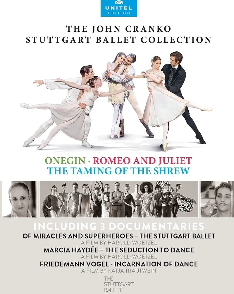 Three legendary performances from the Stuttgart Ballet in the choreography of John Cranko: Onegin, Romeo and Juliet and The Taming of the Shrew. Including bonus conversations on each ballet and three documentaries on the Stuttgart Ballet and its outstanding da...