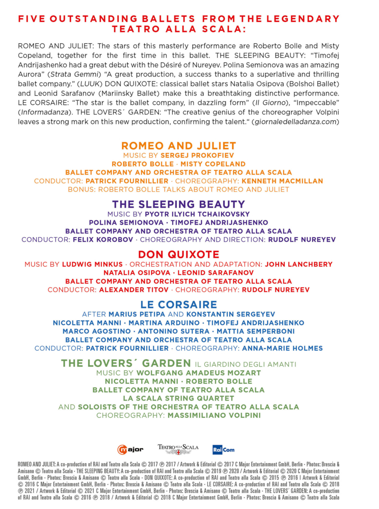 Die Mailänder Scala ist nicht nur eines der bedeutendsten Opernhäuser der Welt, die hauseigene Ballettruppe gehört seit Jahrzehnten zu den besten europäischen Tanzkompanien. Diese Sammelbox fasst einige der Ballett-Hightlights aus Mailand der letzten Jahre zus...