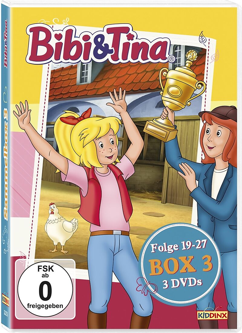 Bibi Blocksberg Zeichentrickfilme in der praktischen Sammelbox 3: 9 Zeichentrickfilme auf 3 DVDs! Die Box enthält die Folgen: DVD 1: Sabrina wird entführt Ein Preis für den Martinshof Das Westernturnier DVD 2: Das große Wettreiten Das Pferd in der Schule Der P...