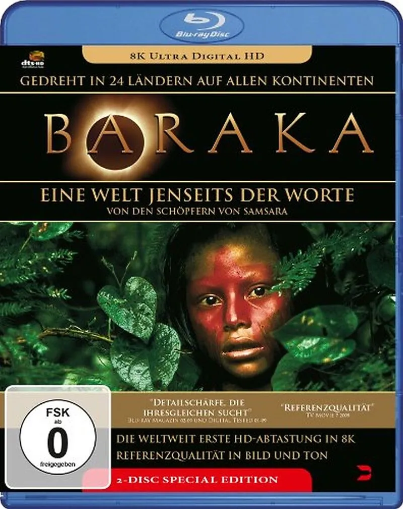 BARAKA ist ein Wort aus der Sufi-Sprache und heißt etwa: ATEM DES LEBENS. Mit einer computergesteuerten TODD/AO 70mm Kamera fängt Ron Fricke die Schönheit der Natur und das Schicksal der Menschen in atemberaubenden Bildern und berauschenden Klängen ein. In Tan...