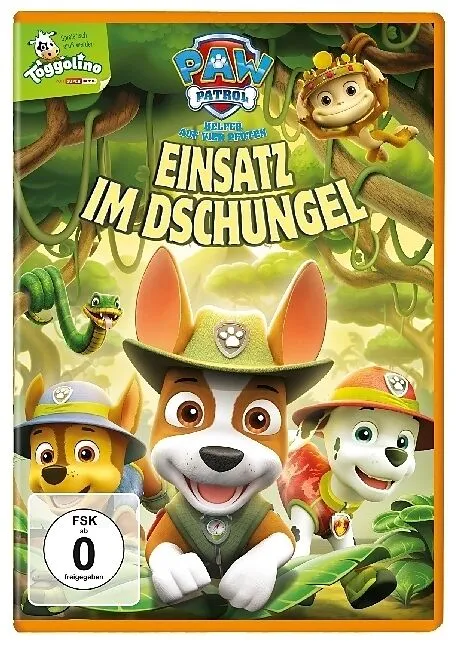 Schwing dich in sieben aufregende Dschungel-Abenteuer inklusive einer Doppelfolge mit dem neuen Fellfreund Tracker. Er unterstützt die "PAW Patrol" dabei, das Geheimnis um die Affenkönigin zu lüften, beschützt eine Baby-Schlange und nimmt es mit einer Riesenpf...
