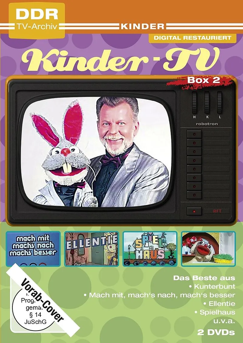 Die große Kinder-TV-Box mit Zauberpeter, Ellentie und den Helden aus dem Spielhaus... und noch vieles mehr! Sechs komplette Folgen aus den schönsten Kinder-Serien des DDR-Fernsehens: Das Spielhaus Guckkasten für kleine Leute Mach mit, machs nach, machs besser ...