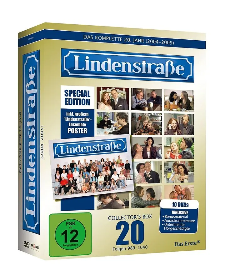 Das Jubiläumsjahr der Lindenstraße komplett auf 10 DVDs - mit exklusivem Poster Das 20. Jahr von Deutschlands beliebtester und erfolgreichster TV-Serie auf DVD - mit allen 52 Folgen, die zwischen Dezember 2004 und Dezember 2005 gesendet wurden, und wie immer e...