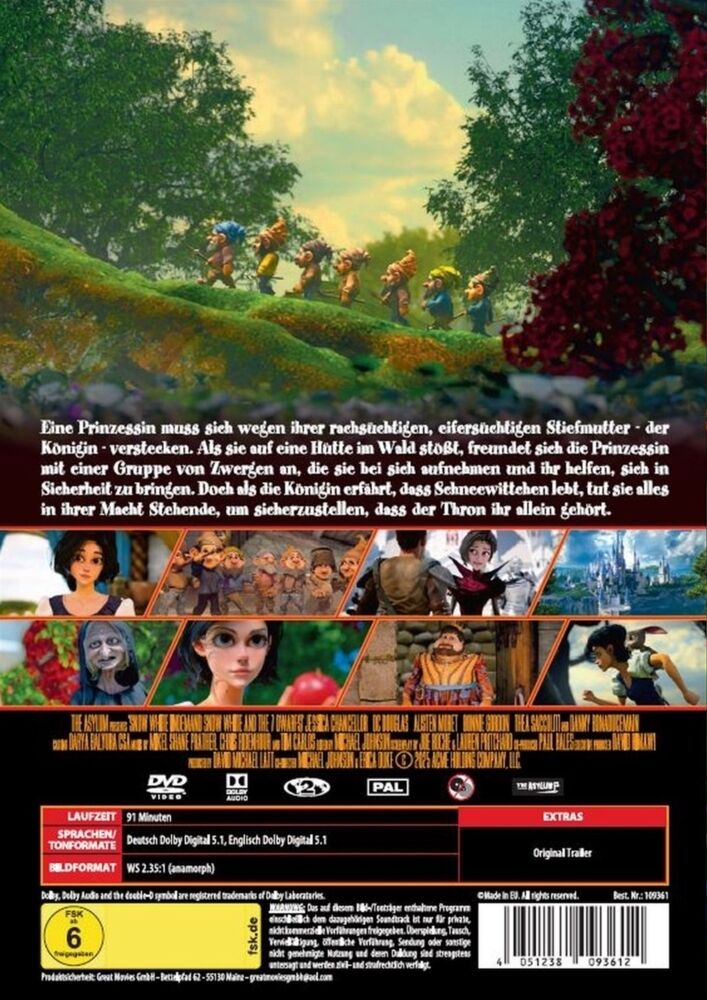 Eine Prinzessin muss sich wegen ihrer rachsüchtigen, eifersüchtigen Stiefmutter - der Königin - verstecken. Als sie auf eine Hütte im Wald stößt, freundet sich die Prinzessin mit einer Gruppe von Zwergen an, die sie bei sich aufnehmen und ihr helfen, sich in S...