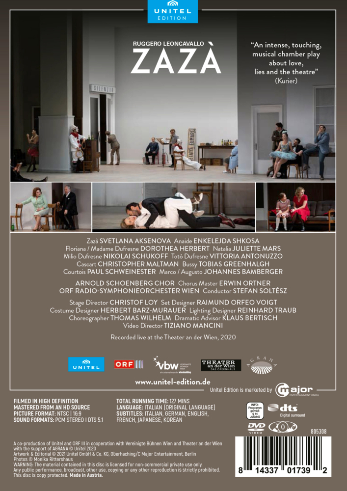 Arnold Schoenberg Chor - Svetlana Aksenova (Zazà) - Enkelejda Shkosa (Aniade) - Juliette Mars (Natalia) - Nikolai Schukoff (Milio Dufresne) - u.a. // Mit Ruggero Leoncavallos Rarität "Zazà" gelang dem Theater an der Wien ein veritabler Coup mit einer grandiose...