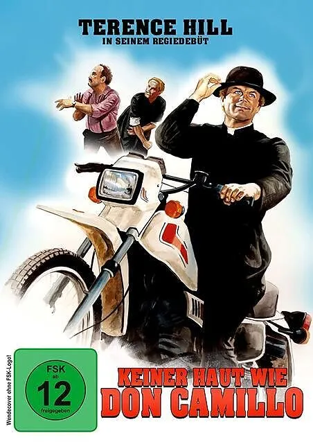 Don Camillo (Terence Hill) ist ein Priester der anderen Art. Seine Kleidung besteht unter anderem auch aus ausgewaschenen Jeans und poppigen T-Shirts, die er unter der Soutane trägt. Zu dem besitzt er auch einen Feuerstuhl und auch sein Gebaren gleicht mehr de...