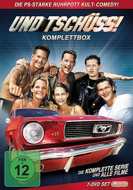 Und Tschüss - Die Serie (Deutschland 1995, 585 min., FSK 12): Günni liebt seinen Ford Mustang, seine Clique und seine Freundin Petra. Sein Kumpel Jürgen liebt seinen aufgemotzten Käfer, macht Zivi und ist mit der "höheren Tochter" Saskia liiert. Metal-Freak "Z...