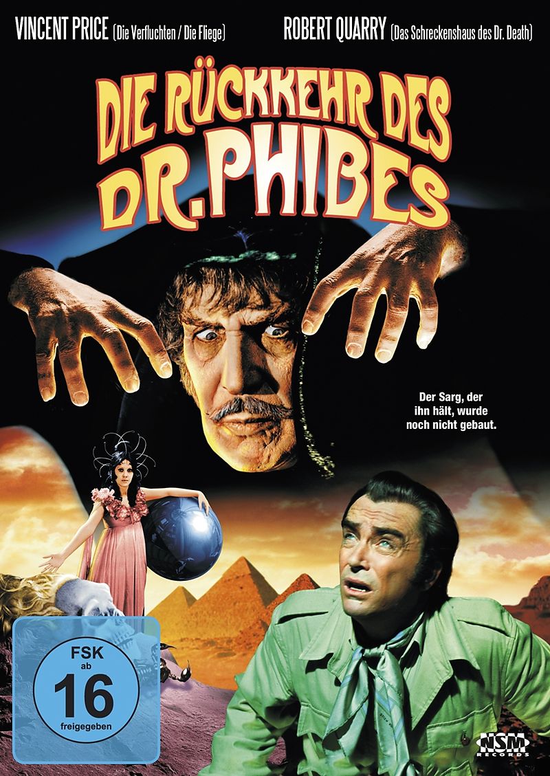 Aus jahrelangem künstlichen Tiefschlaf erwacht, bricht der geniale Dr. Phibes nach Ägypten auf. In seinem Gefolge: die stumme Assistentin Vulnavia - und die Leiche seiner Frau. Um sein geliebtes Eheweib wieder auferstehen zu lassen, vollführt Phibes ein teufli...