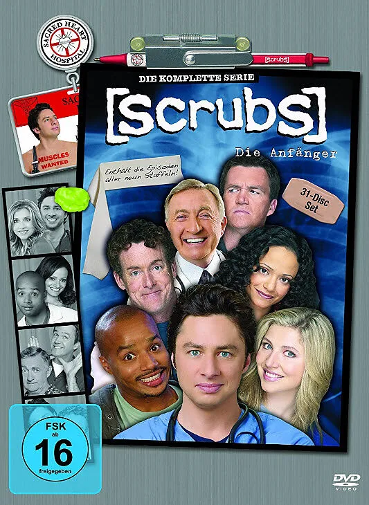 Endlich gibt es alle neun Staffeln der beliebten Comedy-Serie Scrubs - Die Anfänger in einer Komplett-Box einem Sacred Heart Krankenhaus Ausweis, pfiffiger Hologramm Karte sowie einem exklusiven Fotostreifen der legendären Darsteller. Ob stressiger Klinikallta...Endlich gibt es alle neun Staffeln der beliebten Comedy-Serie Scrubs - Die Anfänger in einer Komplett-Box einem Sacred Heart Krankenhaus Ausweis, pfiffiger Hologramm Karte sowie einem exklusiven Fotostreifen der legendären Darsteller. Ob stressiger Klinikalltag oder kompliziertes Privatleben - bei den liebenswert-chaotischen Medizinern John Michael "J.D." Dorian (Zach Braff), Christopher Turk (Donald Faison) und Elliot Reid (Sarah Chalke) geht es immer heiß her. Gemeinsam mit dem fiesen Hausmeister (Neil Flynn), der engagierten Krankenschwester Carla Espinosa (Judy Reyes), sowie den zwei bissigen Vorgesetzten Dr.Bob Kelso (Ken Jenkins) und Dr. Perry Cox (John C. McGinley) bestreiten sie ihren turbulenten Berufsalltag. Dabei machen ihnen ihre nervigen Kollegen, bizarre Beziehungsgeschichten und seltsame Patienten oftmals das Leben schwer. Doch sie verlieren niemals ihren Humor und halten als Team fest zusammen. Tauchen Sie mit Scrubs - Die Anfänger: Die komplette Serie in den aufregenden Betrieb des Sacred Heart Krankenhauses ein und seien Sie dabei, wenn J.D. Sie an seinen Gedanken, Ängsten und Tagträumen teilhaben lässt. Die mehrfach ausgezeichnete Comedy-Serie treibt Ihnen vor Lachen Tränen in die Augen und darf in keiner DVD Sammlung fehlen!