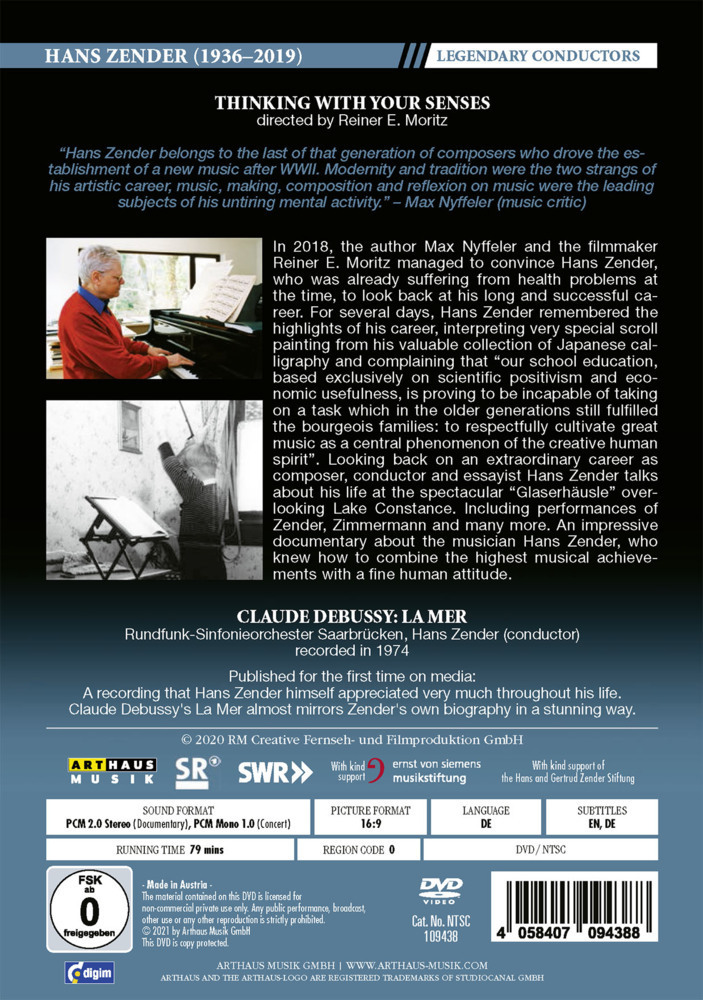 2018 gelang es dem Autor Max Nyffeler und dem Filmemacher Reiner E. Moritz, Hans Zender, der damals schon gesundheitlich angegriffen war, zu einer Rückschau über seine lange und erfolgreiche Kariere zu bewegen. Über mehrere Tage erinnerte sich Hans Zender an H...