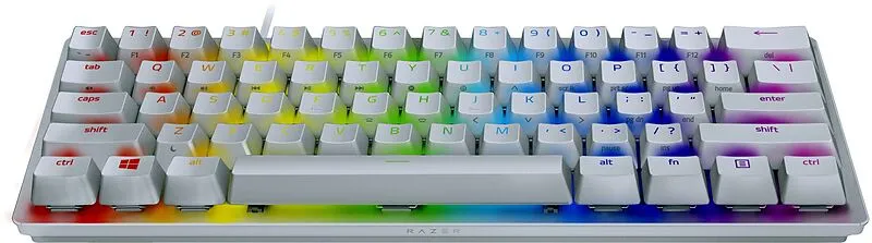 Die Razer Huntsman Mini hat weder Funktionstasten noch den Pos1-Block und den Ziffernblock einer herkömmlichen Tastatur im Standardformat, bietet aber dennoch den kompletten Funktionsumfang, denn alle zusätzlichen Befehle lassen sich über Sekundärfunktionen und Tastenkürzel eingeben.