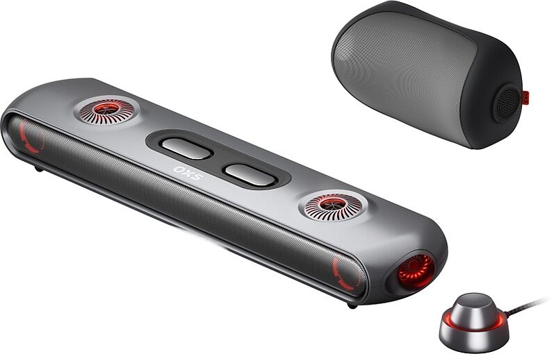 OXS Thunder Pro+ verfügt über 7.1.2-Kanal Dolby Atmos-Audio und umfasst eine Desktop-Soundbar und einen kabellosen Satelliten-Nackenlautsprecher. Mit 10 präzise abgestimmten Treibern und der innovativen Akustik von Dolby erzeugt sie eine lebensechte 3D-Klangla...OXS Thunder Pro+ verfügt über 7.1.2-Kanal Dolby Atmos-Audio und umfasst eine Desktop-Soundbar und einen kabellosen Satelliten-Nackenlautsprecher. Mit 10 präzise abgestimmten Treibern und der innovativen Akustik von Dolby erzeugt sie eine lebensechte 3D-Klanglandschaft, die Sie in die Welt Ihres Spiels, Films oder Ihrer Musik eintauchen lässt.