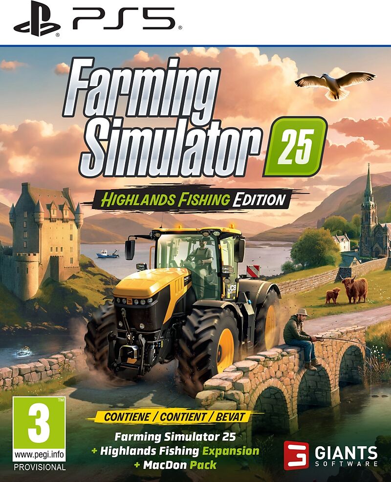 Farming Simulator 25 : Highlands Fishing Edition regroupe à la fois le jeu principal très apprécié et l'extension Highlands Fishing . Profitez de 26 cultures, 4 cartes, plus de 400 machines, plus de 150 marques authentiques et de l'aquaculture en plus de l'agr...