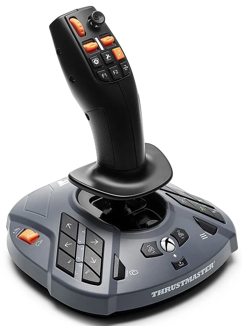 Übernehmen Sie die volle Kontrolle über jedes landwirtschaftliche Gerät oder jede schwere Maschine mit dem SimTask FarmStick - Thrustmasters vielseitigem und präzisem Joystick, der über 3 Richtungsachsen, einen Multifunktionsstick, einen Handgashebel und ein A...