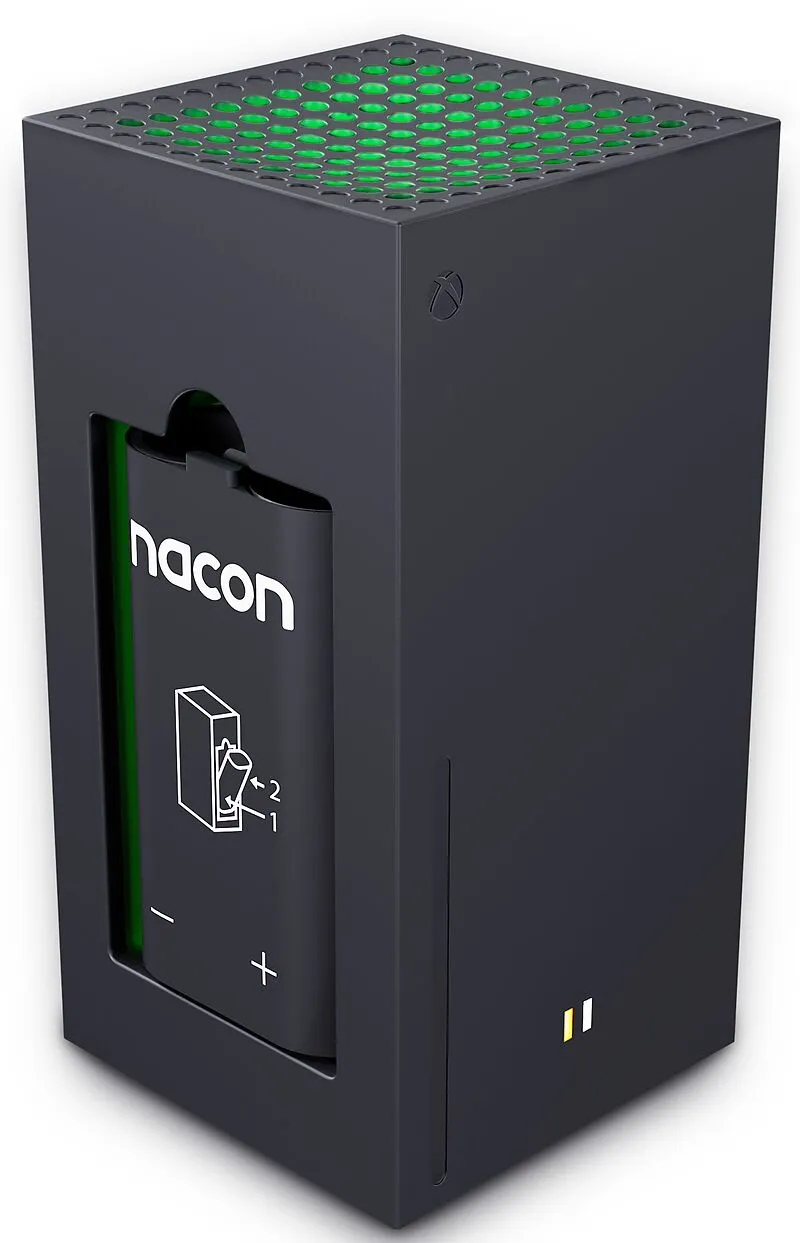 Ladegerät mit zwei externen akkus Gleichzeitiges Aufladen von zwei Akkupacks Laden Sie das erste Akkupack auf, während Sie mit dem zweiten spielen. Kompatibel mit allen Xbox-Controllern: Xbox One und Xbox Series. USB-A auf USB-C Kabel (ca. 1 m). Anzeige des Ak...