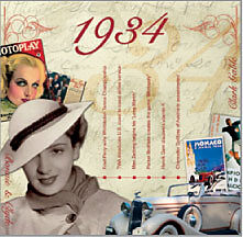 Die wichtigsten Ereignisse des Jahres 1934 sind auf der Karte aufgeführt. Ideales Geburtstags-Geschenk! CD-Inhalt: 1. Eddie Cantor - Okay Toots 2. Fats Waller - Youre Not The Only Oyster In The Stew 3. The Jimmie Lunceford Orchestra - Swingin Uptown 4. Duke ...