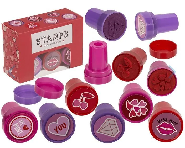 6 Stempel Herzen & Küsse, je 2,5 cm,