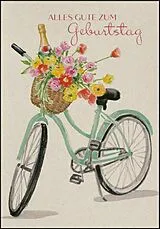 • Happy Birthday Doppelkarte mit Blumengeburtstag-Motiv