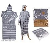 • Fouta Hamam grau/weisser Bademantel Grösse L,