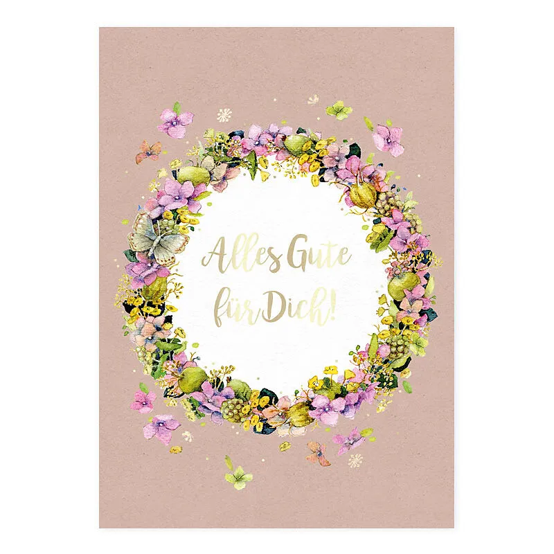 Alles Gute für Dich Postkarte mit Blumenkranz-Motiv