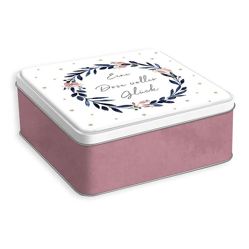 19 x 19 x 7,5 cm aus Blech Schöne Dose die vielseitig einsetzbar ist. Ob als Verpackung für ein kleines Geschenk oder als Aufbewahrung für Krimskrams, sie passt einfach immer.