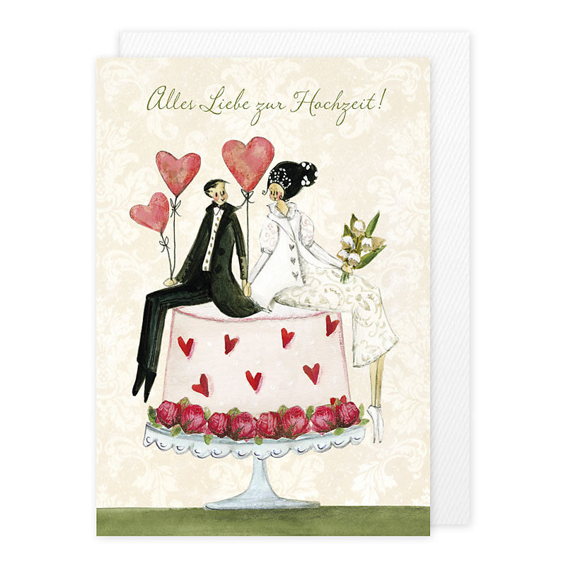 Alles Liebe zur Hochzeit Doppelkarte mit Torten-Motiv