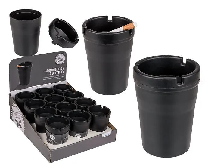 aus Kunststoff, Der Aschenbecher ist aus Kunststoff und hat drei Ablagemulden. Die Zigaretten erlöschen im Behälter automatisch und rauchfrei. Die perfekte Lösung wenn Raucher und Nichtraucher zusammentreffen. Preis pro Stck