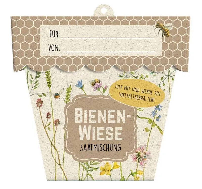 Mäppchen aus Graspapier mit Saatmischung, Mini-Pflanzenstecker und Platz für Grüsse