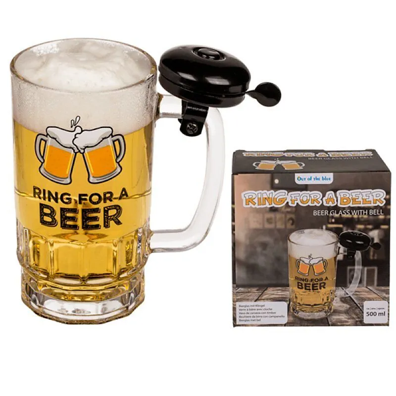 "Hallo Service, bitte nochmals ein Bier!", das war früher. Mit diesem witzigen Bierglas einfach klingeln! ca. 14 x 14,5 cm aus Glas, für ca. 500 ml, im Geschenkkarton