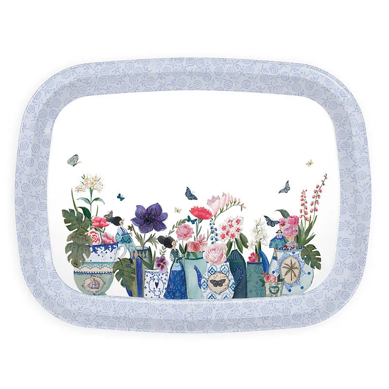 Blumen in Porzellanvasen Tablett