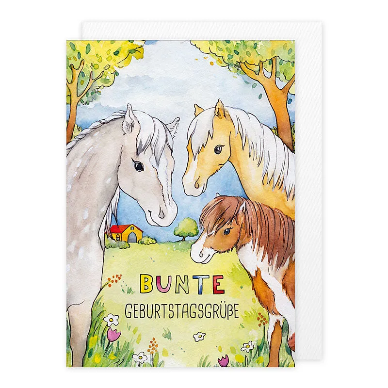 Bunte Überraschungsgrüsse Doppelkarte mit Pferde-Motiv