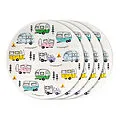 4 Teller mit Wohnwagen und Wohnmobil Motiven Kunststoff-Teller aus recycelten Plastikflaschen hergestellt Durchmesser: 22,5 cm Lebensmittelecht, Spülmaschinenfest, Mikorwellensicher, BPA-Frei