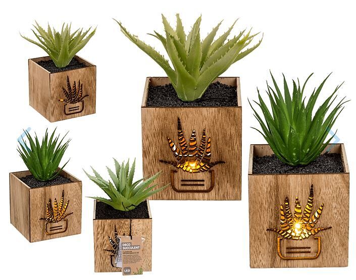 ca. 10 x 18 cm, in Holztopf mit Pflanzenmuster & LED (inkl. Batterien) Preis pro Stck