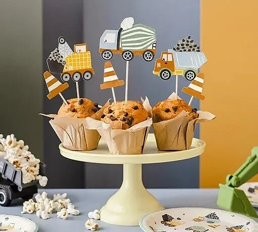 Dekorationen für Muffins - Baufahrzeuge, Set enthält 6 Elemente (4 Motive), Farbenmix, Höhe ca. 4- 7 cm. Produkt zum Selbstzusammenbau