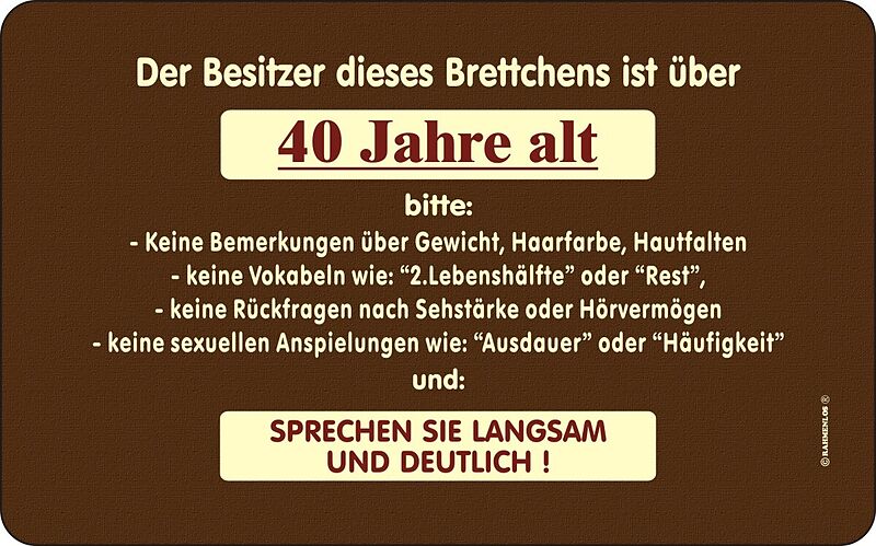 Der Besitzer dieses Brettchen ist über 40 Jahre alt BRETTCHEN