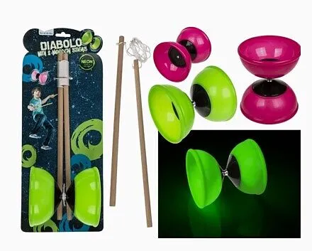 Spannendes und faszinierendes Spiel! Bringe diesen Diabolo auf Hochtouren indem du ihn mit diesen beiden Holzstäbchen antreibst bis er schwindelerregend dreht! Erhältlich in grün und pink, Farbe nicht wählbar, kommt nach Lagerverfügbarkeit Achtung: Nicht für K...