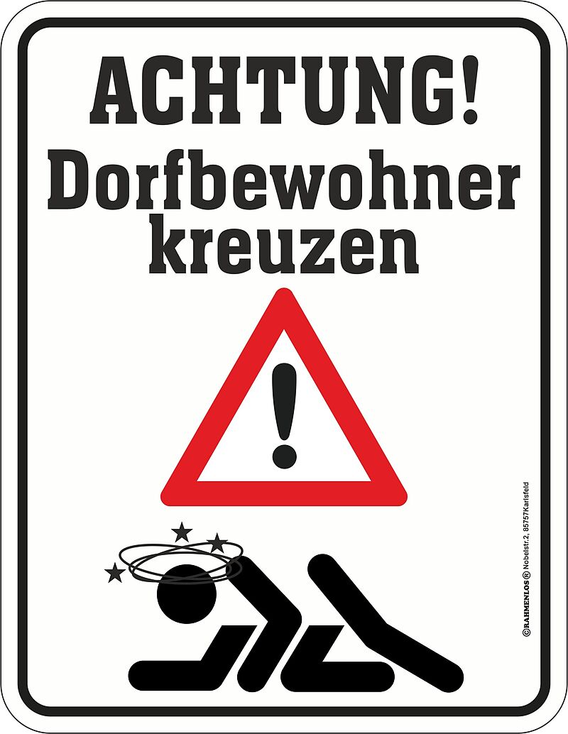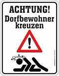 Dorfbewohner kreuzen Blechschild