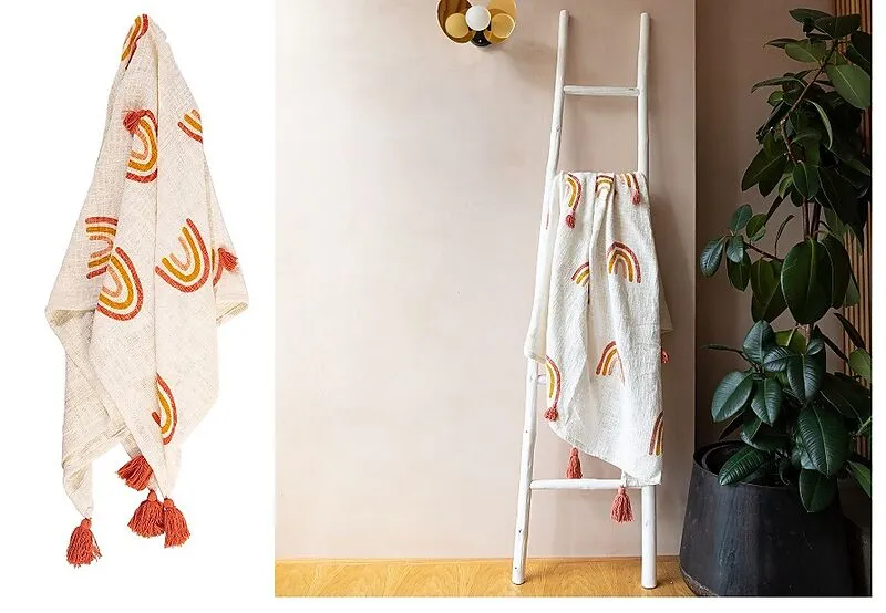 Aus Baumwolle gefertigt. Mit einer Farbgebung in erdigen Pastelltönen. Ein einfacher, schöner Überwurf! Perfekt für deine Wohnung! 150 x 125 cm (ein Produkt von sass & belle)