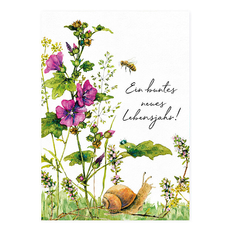 Ein buntes neues Lebensjahr Postkarte mit Garten-Motiv