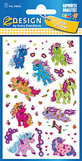 Bunt bedruckte transparente Folie mit farbigem Glimmer Inhalt: 15 Stickers Sticker-Verpackungsgrösse: 16 x 8 cm