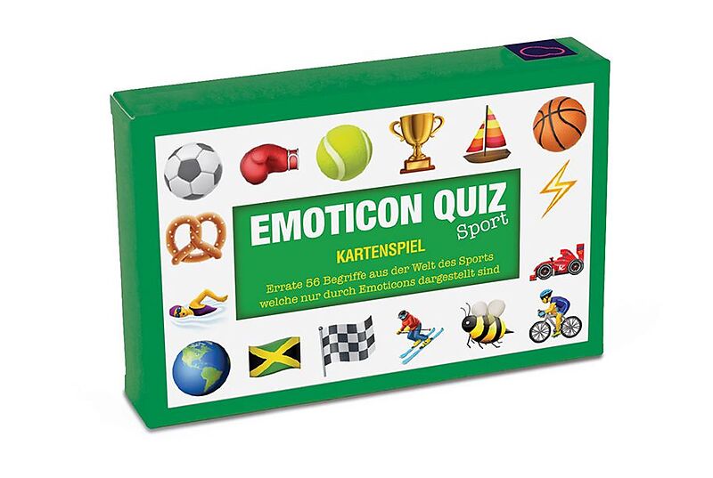 Errate 56 Begriffe aus der Welt des Sports welche nur durch Emoticons dargestellt sind. Ein spannendes Spiel für jedes Alter. Inhalt: - 56 Karten 10 x 7,5 x 4,5 cm (B x T x H)